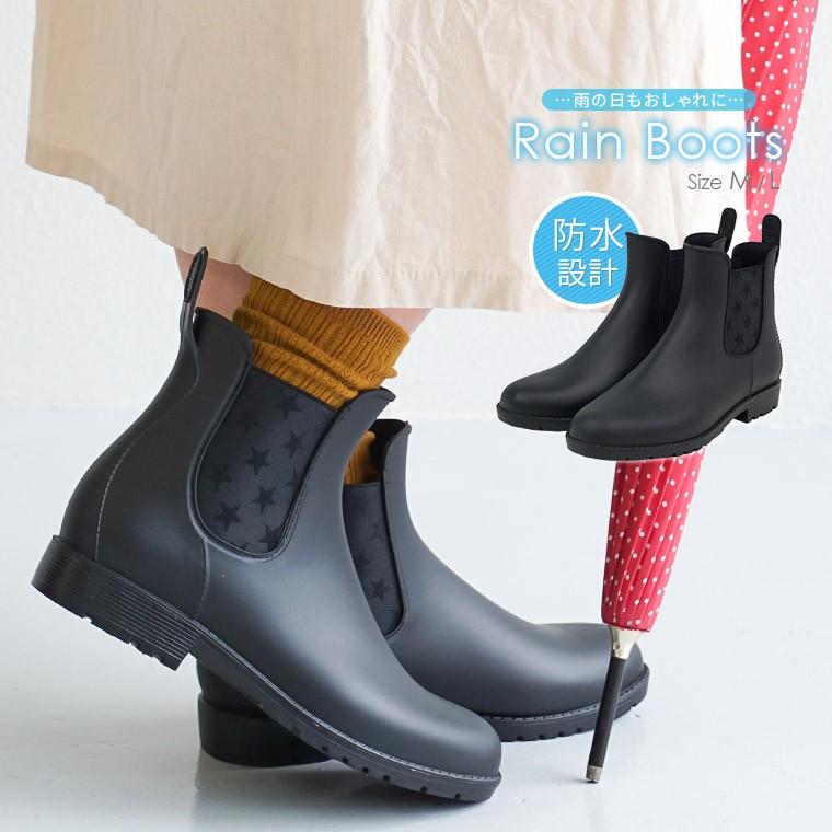 レインブーツ レディース ショート 長靴 おしゃれ かわいい 履きやすい 歩きやすい 痛くない 防滑 サイドゴア 雨靴 雨 雪 星柄 ブラック 黒 400 S Mart 通販 Paypayモール